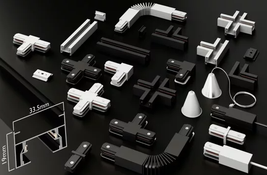 Трек можно без проблем отрезать в нужный вам размер и создавать прямоугольные формы с помощью специальных адаптеров: Прямой соединитель, T-образный соединитель, L-образный соединитель, X-образный соединитель