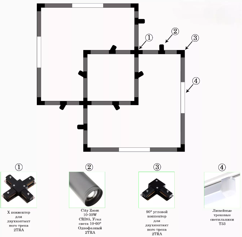 Серия трековых светильников CITY ZOOM 2TRA 3000K/4000K/6000К