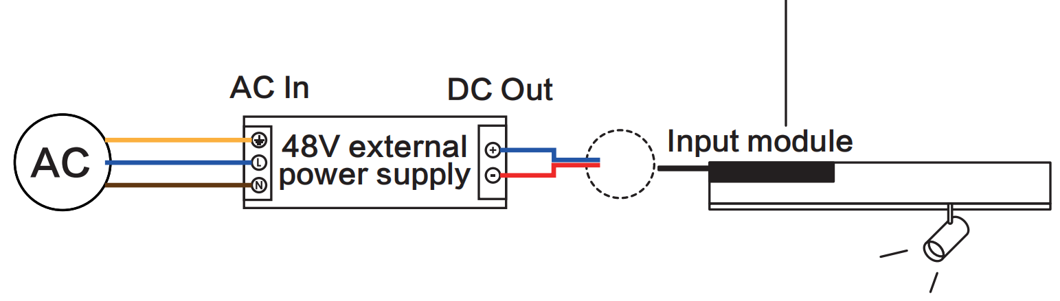 Напряжение на медном проводе составляет всего 48 V – шинопровод безопасен при эксплуатации и замене светильников. Для подключения к электрической сети требуется блок питания, который необходимо подобрать исходя из количества светильников, которые планируется установить на шину.