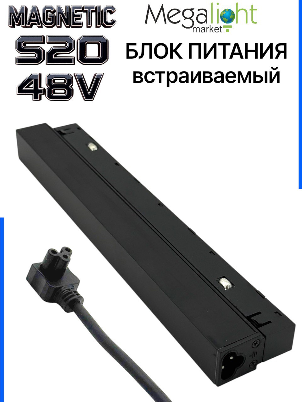 Магнитный встраиваемый шинопровод предназначен для эксплуатации со светильниками серии MAGNETIC S20, рассчитанными на питание от источника постоянного тока DC 48 В.